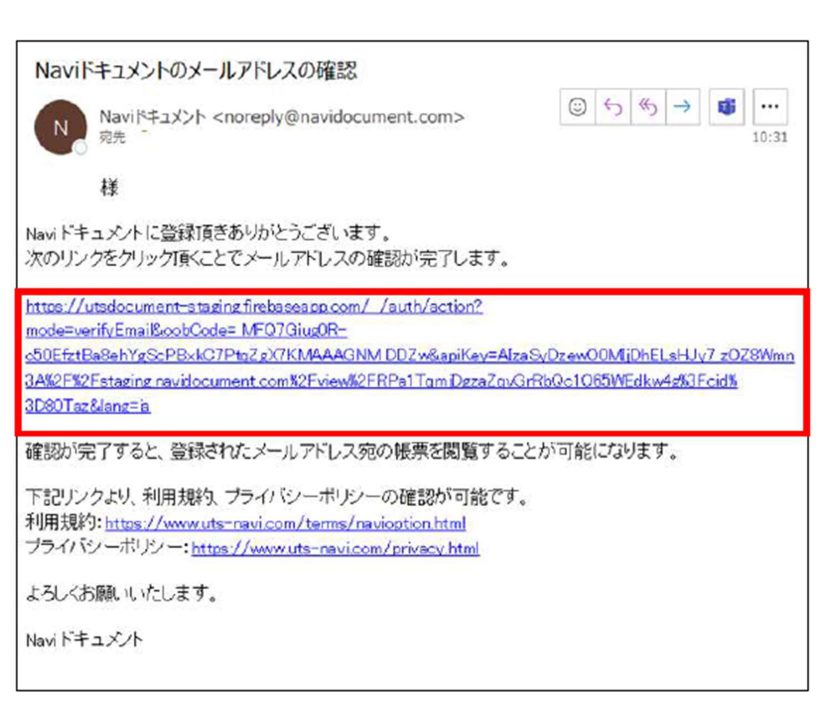 記載されているURLをクリックするとメールアドレスの確認が完了します。