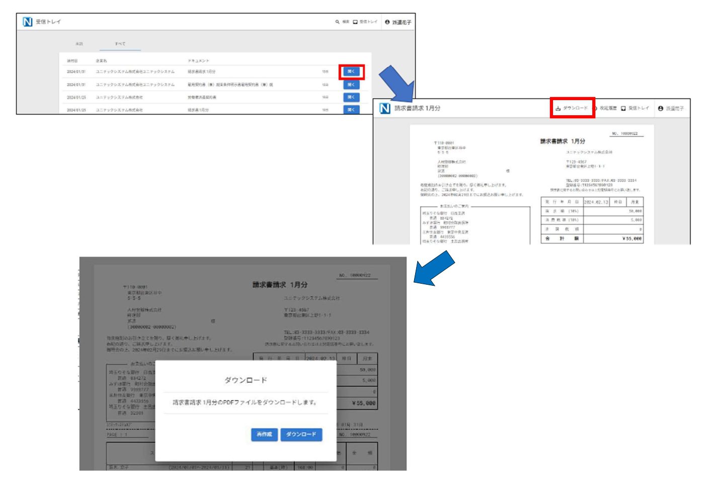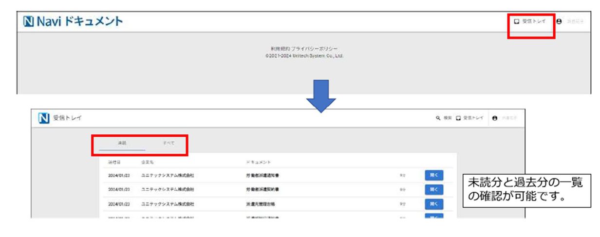 ④確認が完了すると受信トレイができ、帳票の確認が可能です。